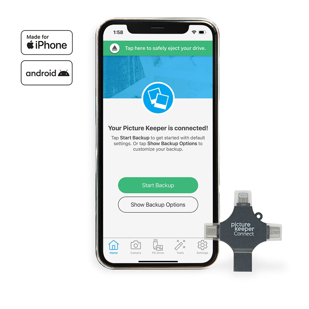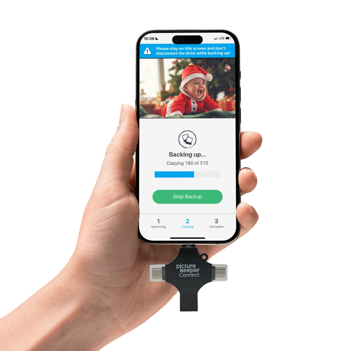 - Seamlessly picks up where the last backup left off, even if you use a new Picture Keeper drive.