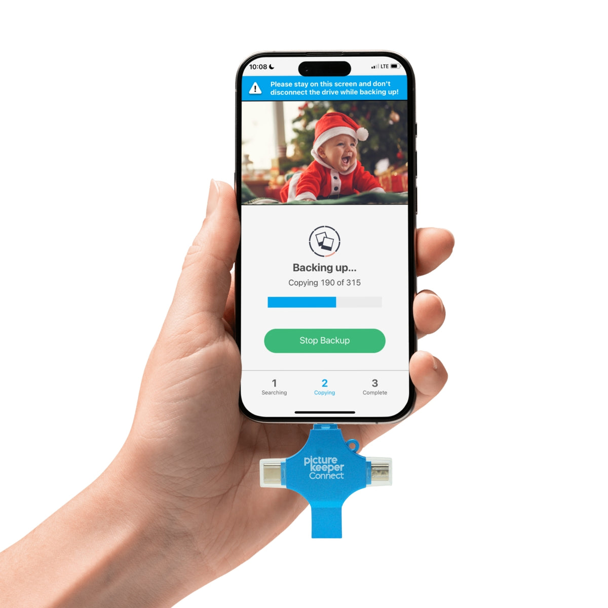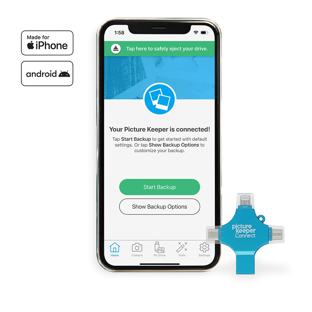 - Seamlessly picks up where the last backup left off, even if you use a new Picture Keeper drive.