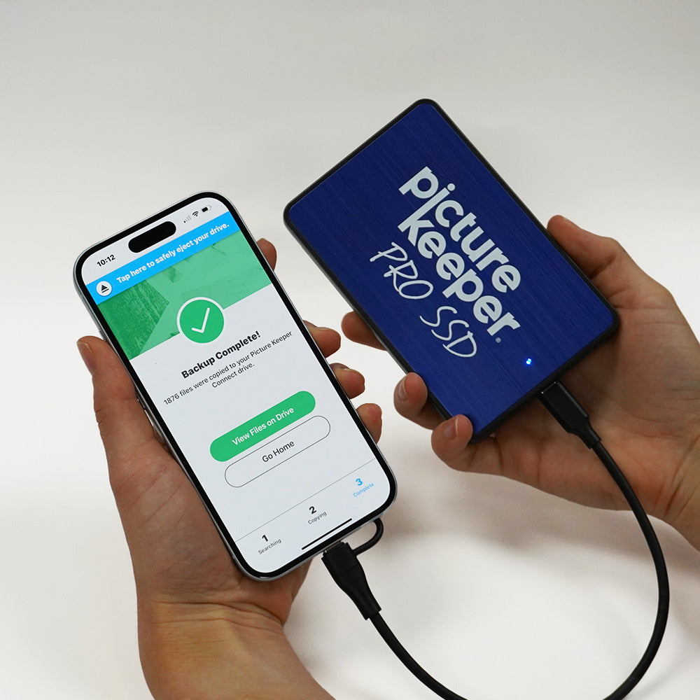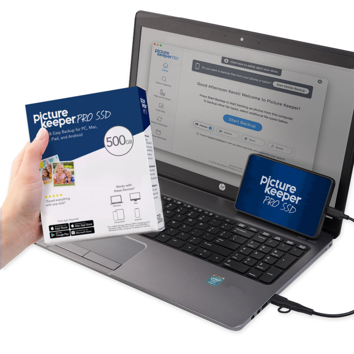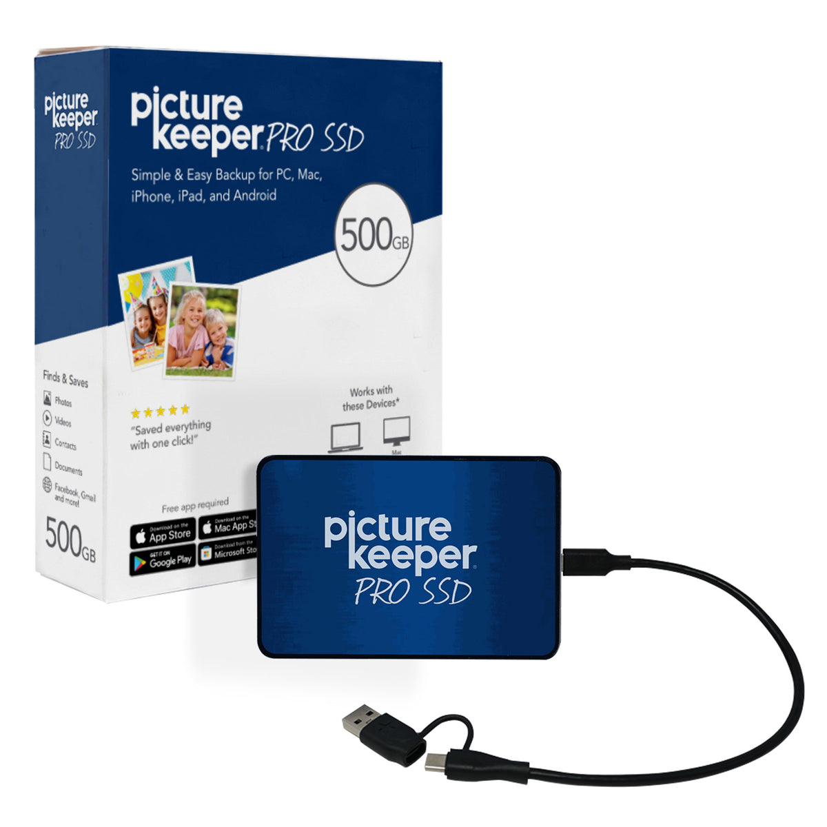 The simple and easy way to backup pictures, videos and contacts stored on your phone, tablet or computer. Elevate your data security and storage game with the Picture Keeper Pro 500GB Backup Solution. This powerhouse of a SSD ensures that your important files and memories are not only securely stored but also shielded from digital threats. With a spacious 500GB capacity, you'll have plenty of room for all your documents, photos, videos, and more. Say goodbye to worries about data loss and digital vulnerabilities, and safeguard your information with this all-in-one backup solution.