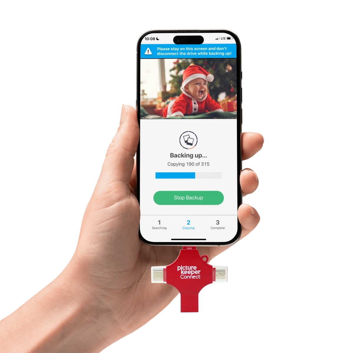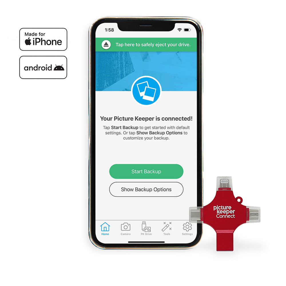 • Seamlessly picks up where the last backup left off, even if you use a new Picture Keeper drive.